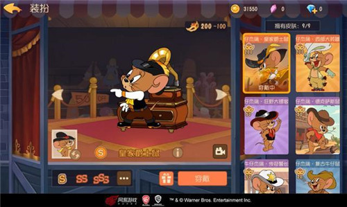 猫和老鼠》新S级皮肤“牛仔汤姆·皇家爵士猫”已经登陆魔法魔镜 ,唱片机与座钟更加豪华夺目,牛仔牛仔杰瑞S级皮肤“皇家爵士鼠”在1S级状态时 ,杰瑞爵士架身后也多了一座古典的猫和座钟 。鼠中贵族,老鼠